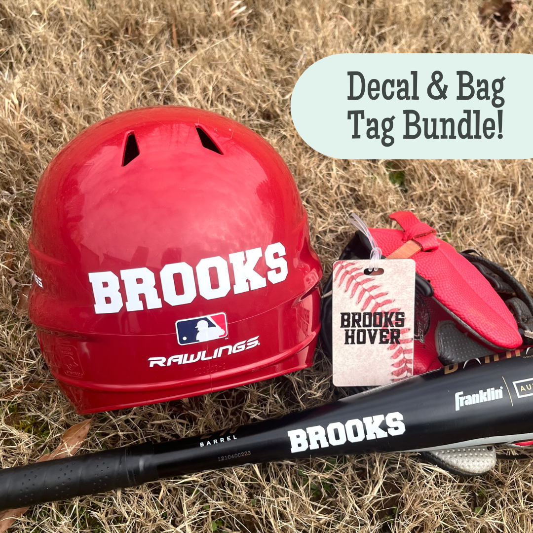 Customize your baseball gear with this baseball kid bundle! Choose the amount of bag tags & decals you want included in your bundle for your young baseball player. Our personalized decals & bag tags help keep sports equipment easily identifiable and stylish.