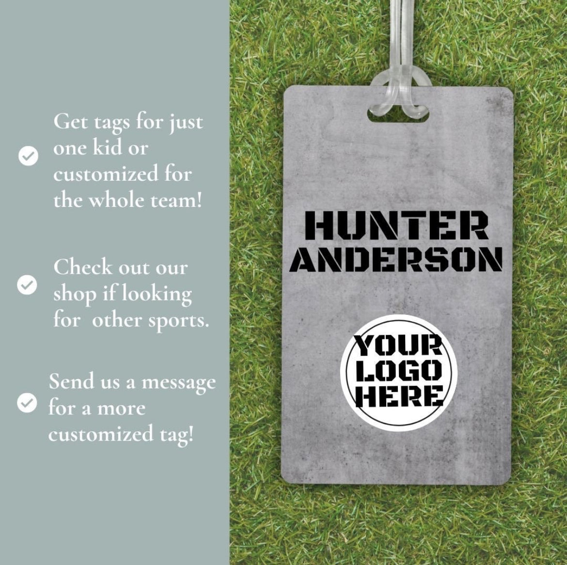 Grab these bag tags for just your kid or for the entire team! These are perfect for easily identifying sports equipment bags! Send us your logo (support@thegamedayfamily.com) and we will add it to your tags.